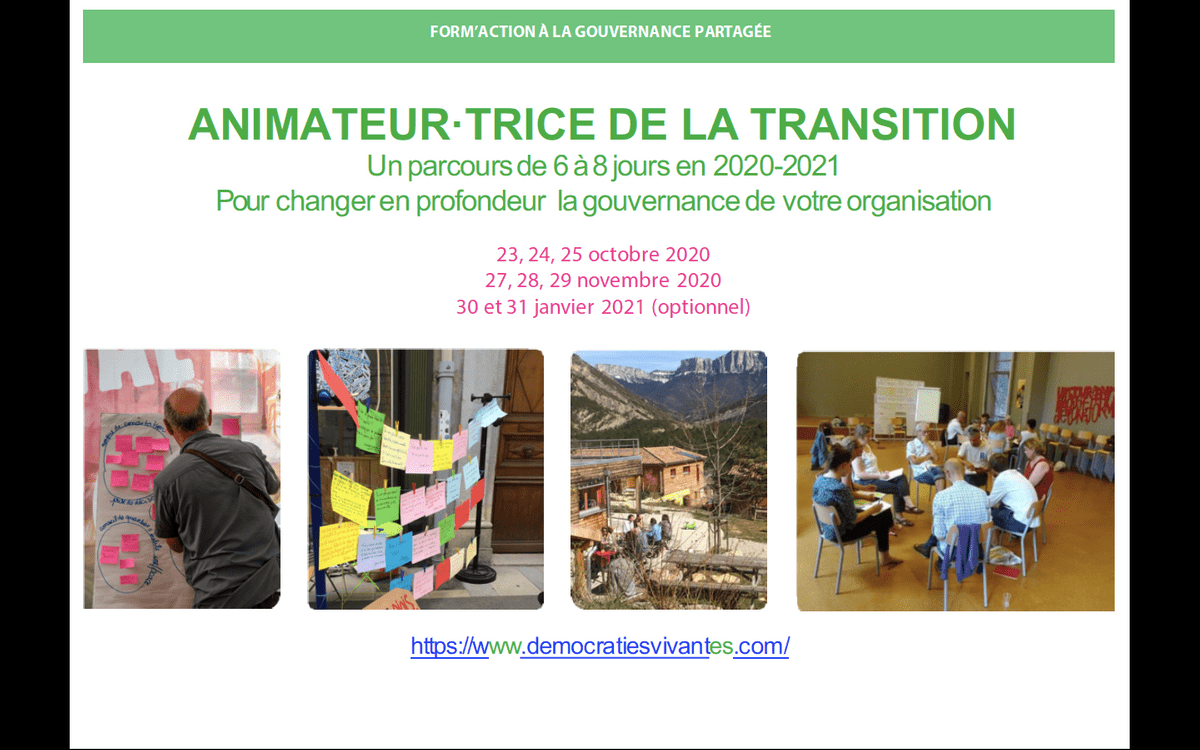 Quels sont les outils d'animation de l'Intelligence Collective ? Pourquoi les utiliser, dans quel cadre ? Quelles postures pour l'animateur/trice ? Comment organiser et animer une réunion qui permet à chacun e de trouver une place équitable dans la construction d'un objet commun ? Quels sont les processus qui permettent de faire vivre une construction réellement participative ?